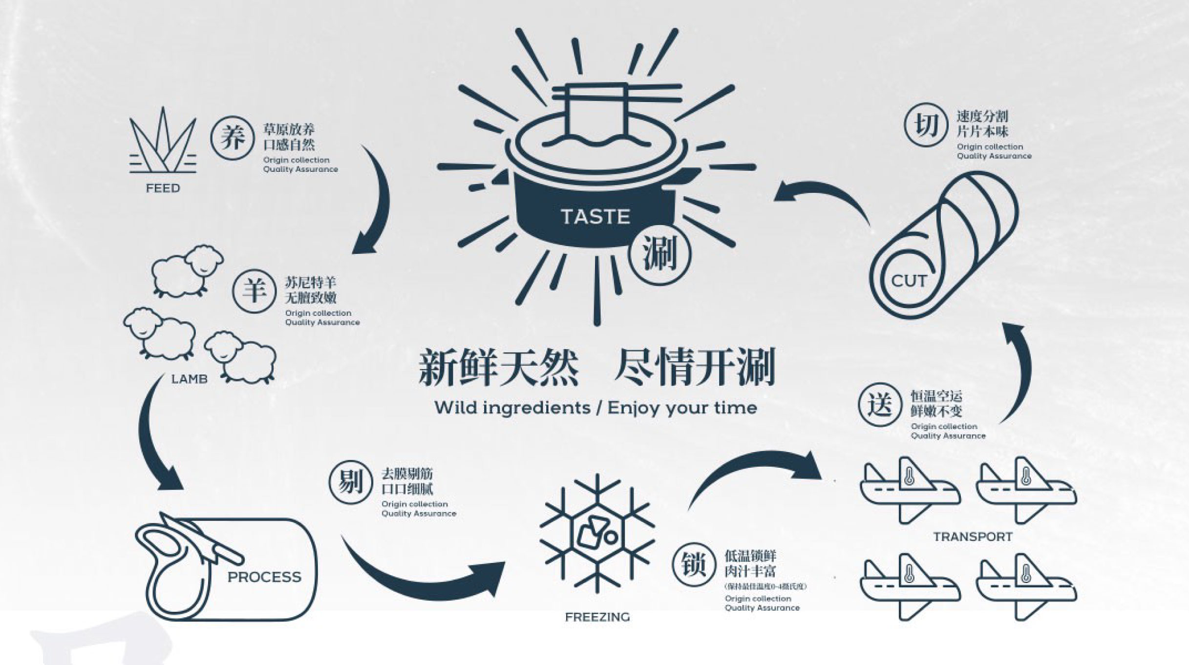 优选河套平原谷饲羊, 每一只都检疫 自有工厂10万级净化分割车间,无菌、恒温、恒湿、全封闭 只有胴体肌肉饰满、胴体表面脂肪全覆盖。 每一刀都消,0°C-4°C低温排酸 48小时, 每一口都Q弹!